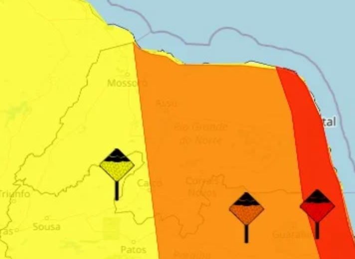 O Instituto Nacional de Meteorologia (Inmet) emitiu três alertas de chuvas para cidades do Rio Grande do Norte nesta segunda-feira (6), com níveis que vão de perigo potencial a grande perigo.