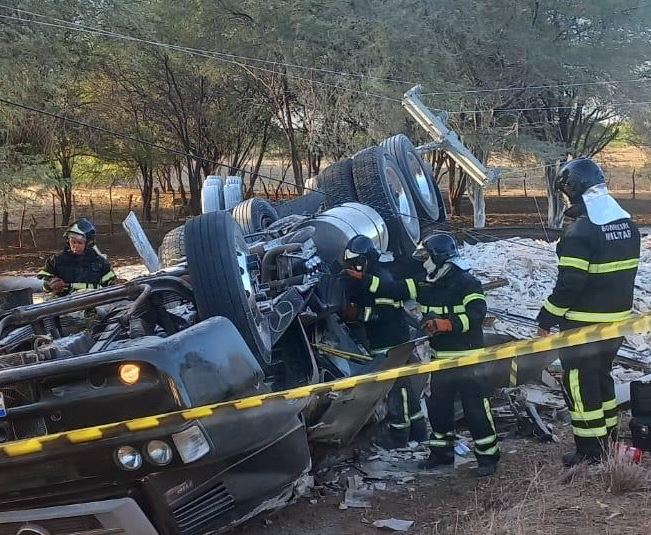 Segundo o Corpo de Bombeiros, a carreta bateu em um poste durante o tombamento, deixando a fiação energizada e dificultando o resgate. Os bombeiros precisaram aguardar o desligamento da rede elétrica para acessar o local com segurança.