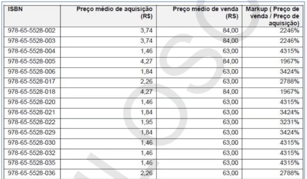 Tabela com dados de compra e venda de livros fornecidos pela Life Educacional a prefeituras. Foto: Reprodução/processo judicial