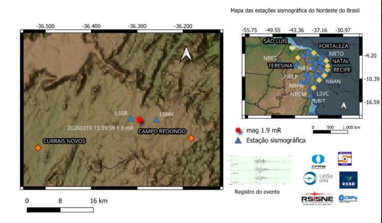 O município de Currais Novos, na região do Seridó, registrou quatro tremores de terra ao longo de março, segundo o Laboratório Sismológico da Universidade Federal do RN (LabSis/UFRN).