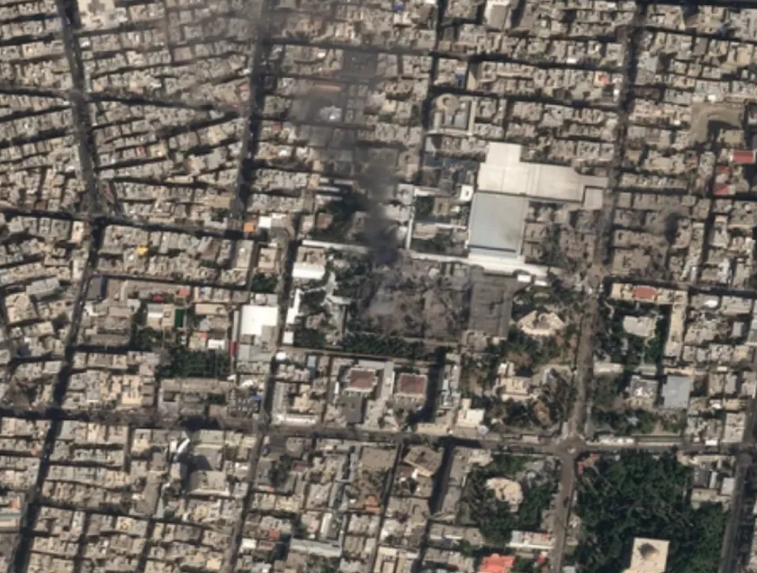 Imagem de satélite mostra fumaça saindo do complexo do líder supremo do Irã, o aiatolá Ali Khamenei | Foto: Airbus via CNN Newsource