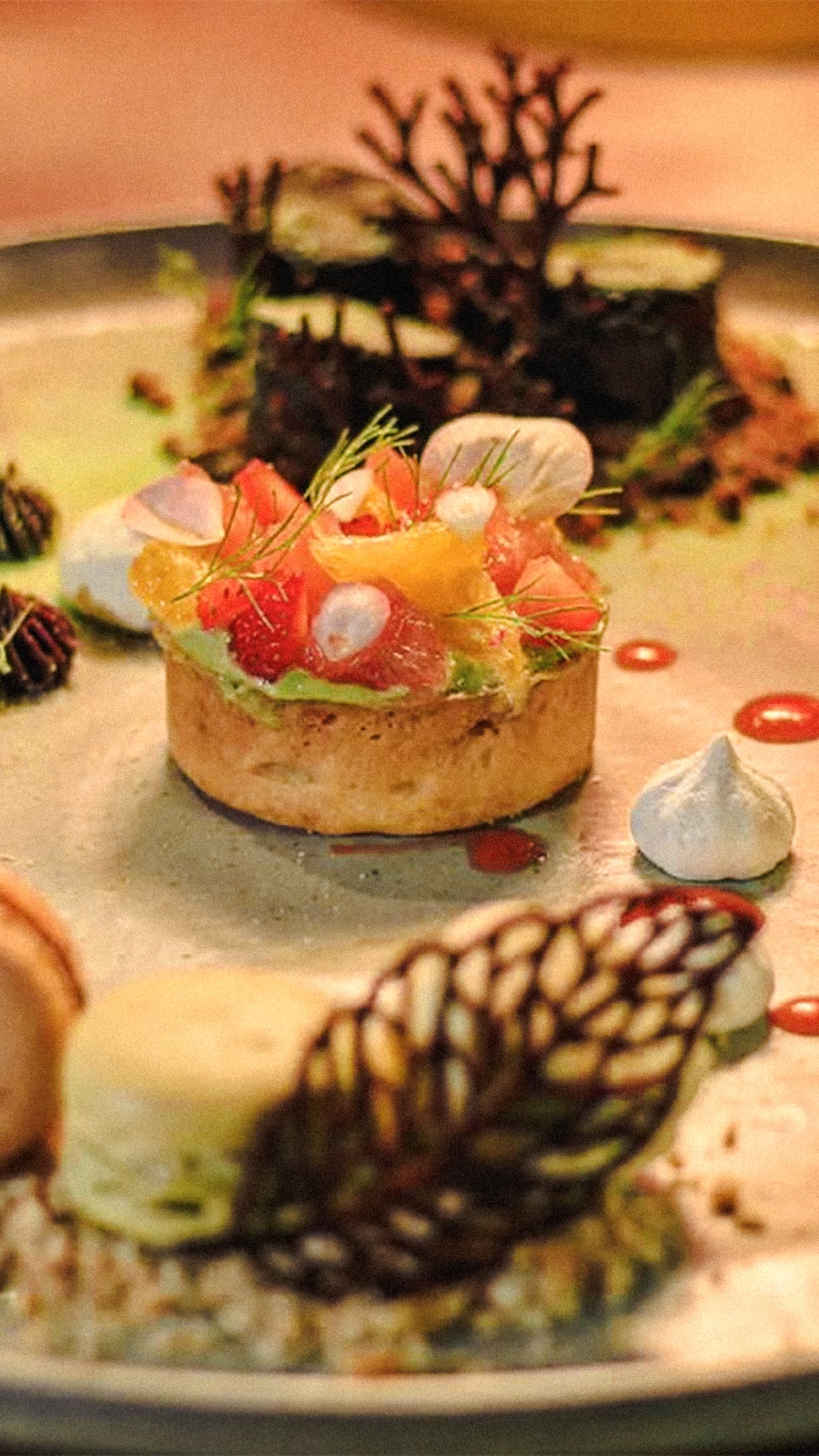 Já no jantar, o restaurante aposta em combinações mais elaboradas, começando com salada de parma com picles de mamão e molho de limão siciliano ou atum defumado com creme de abacate. Entre os pratos principais, destacam-se o risoto de polvo ao vinho tinto, o camarão diavolo com massa longa e molho de tomate picante, e o bife de chorizo servido com legumes grelhados. As sobremesas seguem as mesmas opções do almoço, garantindo um final doce e equilibrado para a experiência.