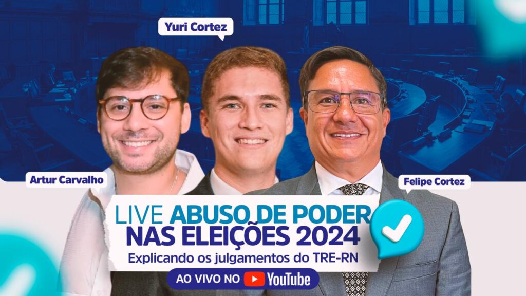 O canal Felipe Cortez Advogado RN no YouTube realiza, nesta quarta-feira, 8 de outubro, às 20h, uma live especial com o tema “Abuso de Poder nas Eleições 2024: entendimentos e consequências dos julgamentos do TRE-RN”.