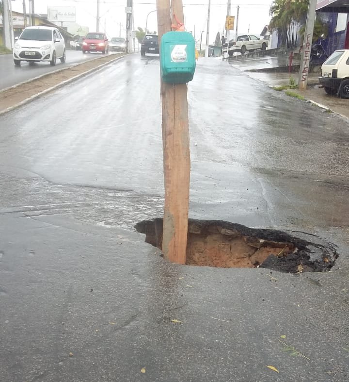 Av. Int. Mário Câmara (Av. 6) parcialmente fechada entre as avs. Lima e Silva e Jerônimo Câmara sentido Cidade da Esperança por causa de buraco. Equipe da #STTU no local. Utilize como rota alternativa a Rua dos Caicós (Av. 7). Foto: 156 Natal – STTU