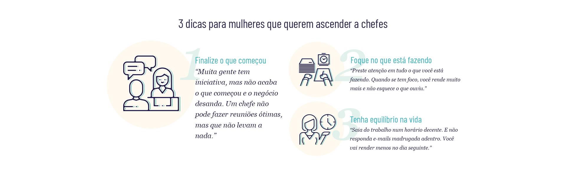 “A mulher valoriza as histórias que as pessoas contam. Uma conversa despretensiosa com chefes mulheres no meio pode render muita coisa boa para a empresa”.
