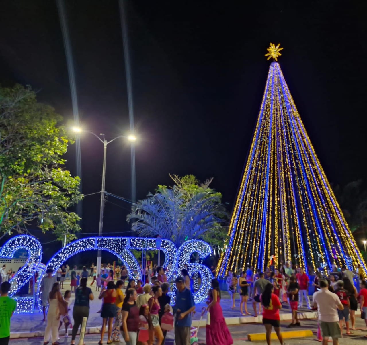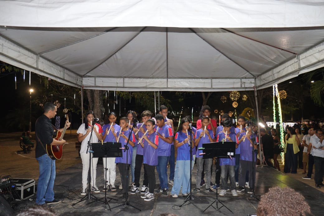 A cerimônia de acendimento das luzes contou com a participação da banda de música da Polícia Militar, além de apresentações culturais de alunos da Escola Estadual Mariluza Almeida, e reuniu moradores de diversos bairros e visitantes, que acompanharam o momento em que a praça ganhou vida com cores, brilho e elementos que remetem ao espírito natalino. A iniciativa da Prefeitura busca fortalecer o turismo local, valorizar os espaços públicos e oferecer lazer gratuito à população. O tema deste ano é “A luz que vem da fé.”