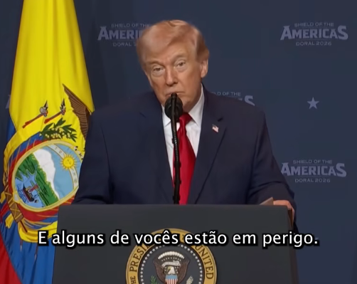 Durante o evento, Trump também criticou a atuação de cartéis no México, afirmando que as organizações criminosas têm ampliado sua influência e representam ameaça à segurança regional.
