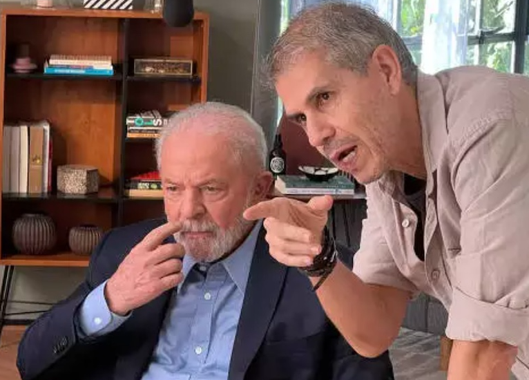 Sidônio Palmeira, chefe da Comunicação, dando instruções a Lula – Foto: divulgação