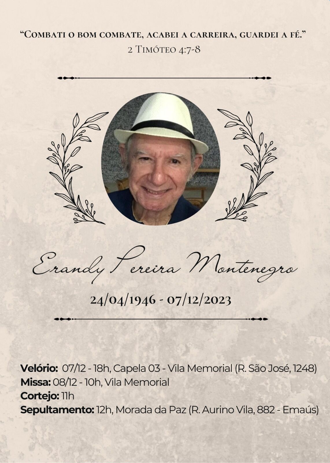 O futebol amanheceu nesta quinta-feira (7) de luto: morreu Erandy Pereira Montenegro, ex-jogador e ex-treinador, de passagens marcantes por Natal, Ceará, Fortaleza e Ferroviário. Foi campeão potiguar com o ABC em 1983.