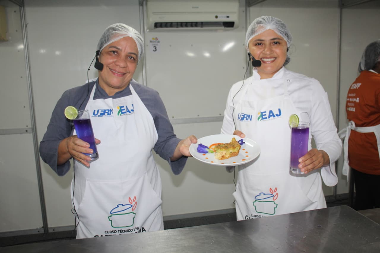 As cozinheiras Monicléa e Jacira demonstraram o preparo de uma torta de frango com ora-pro-nóbis e um drink refrescante feito com clitória. Logo após, a chefe quilombola, Maria Barbosa, apresentou a receita do tradicional bolo preto, reforçando o valor histórico dessa herança gastronômica. “Trazer o bolo preto para esse espaço significa manter viva a memória das nossas ancestrais. A nossa comunidade se sente honrada em compartilhar sua cultura com toda a cidade”, declarou.