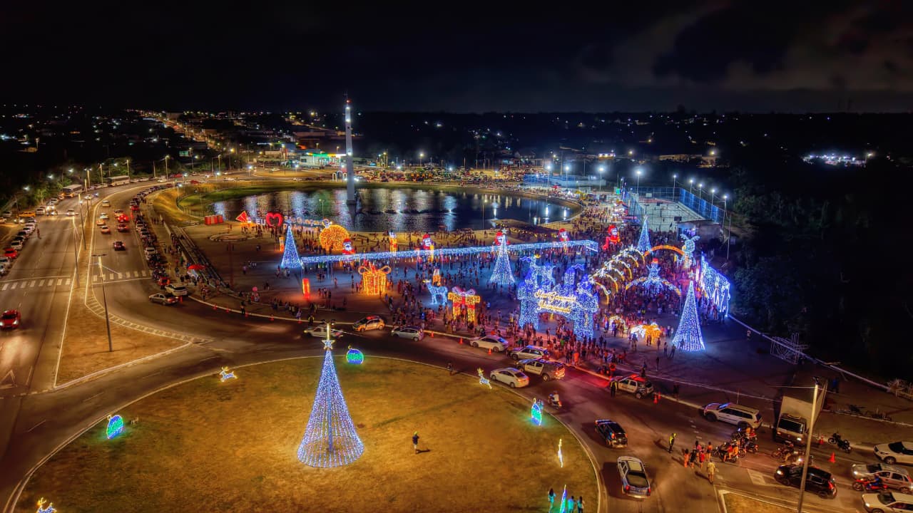 A celebração dos 67 anos de Emancipação Política de São Gonçalo do Amarante ganhou um brilho especial na noite desta quinta-feira (11). Pela primeira vez, a praça do Parque das Fontes, no centro da cidade, recebeu uma moderna iluminação natalina e até neve artificial, atraindo uma multidão que aguardava ansiosa pelo acendimento oficial.