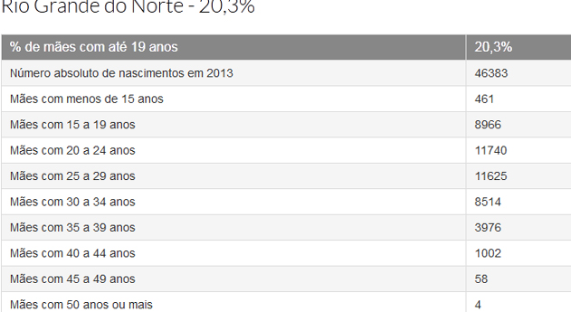 “Mesmo tendo ocorrido uma diminuição proporcional dos nascimentos das mães de 15 a 19 anos de idade, de 20,0% para 17,7%, entre 2003 e 2013, o indicador permanece elevado”, afirma trecho do estudo.
