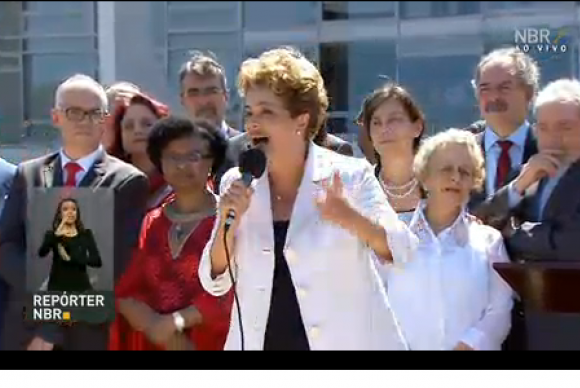 Acompanhada de ministros, governadores e parlamentares do PT e da base aliada, Dilma disse ainda que a decisão do Senado em suspender seu mandato por até 180 dias trazia “riscos ao país”. A presidente agora afastada disse que o impeachment é “fraudulento” e que seu governo foi “alvo de intensa e incessante sabotagem”.