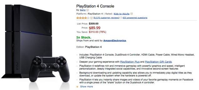 É claro que aproveitaram esta brecha e aproveitaram anúncios falsos do PS4 por valores variando entre US$ 50 e US$ 90, quando o preço natural do videogame, sem descontos, é de US$ 400. A Amazon se apressa para apagar estas publicações tão gritantemente falsas, mas ainda há tempo suficiente para tirar uma screenshot e levar até o Walmart. Um exemplo logo abaixo.