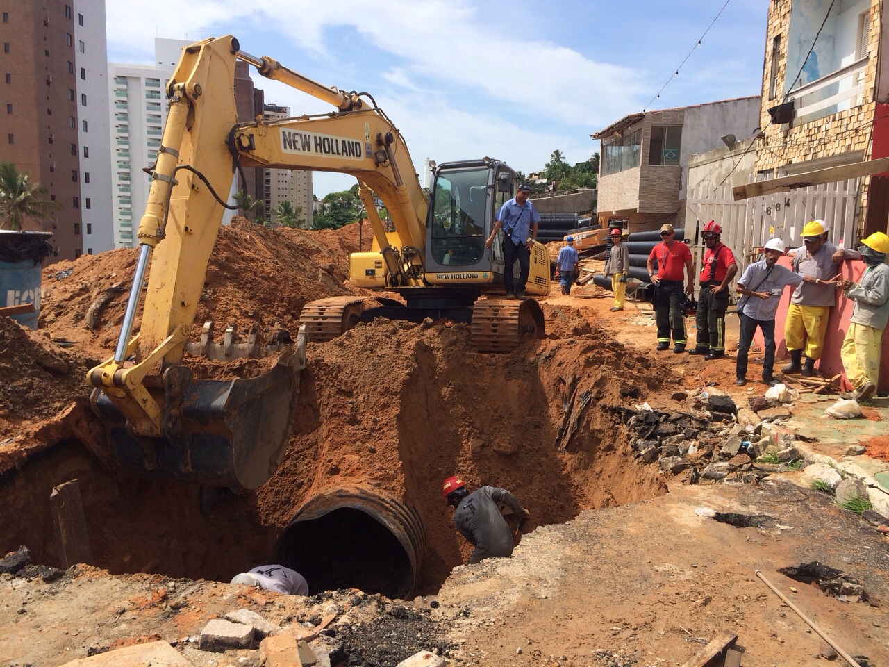 Os bombeiros já percorreram parte das tubulações, mas até o momento não localizaram a vítima. Acredita-se que o corpo do homem, identificado como Kleberson Nascimento, de 37 anos, possa estar em uma das áreas mais estreitas da tubulação em que os bombeiros ainda não tiveram acesso em função do grande acúmulo de areia.