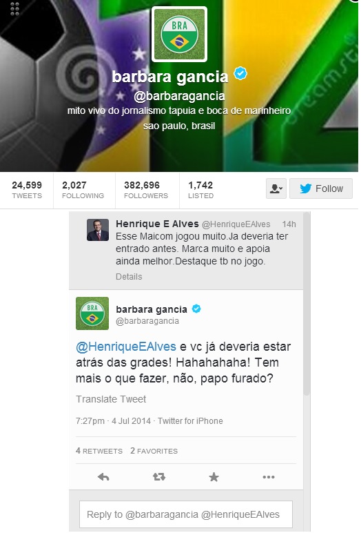 “O que fizeram com o Neymar é brincadeira. De novo. Neymar está apanhando e ninguém faz nada. O cara dá uma porrada nele e não leva cartão. Impressionante. Já quase ficou fora do jogo contra a Colômbia porque levou uma porrada contra o Chile. E outro lá nem cartão tomou. Não sei o critério que estão considerando nessa Copa. Eu preferia que ele tomasse uma mordida para que ele não estivesse nessa situação”, disse Maicon.