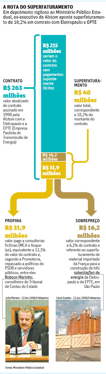 A investigação do Ministério Público de São Paulo sobre a Alstom já não depende apenas de provas recebidas de autoridades francesas ou suíças. Um ex-executivo da empresa resolveu colaborar com a Promotoria. Contou em depoimento que a multinacional francesa pagou em 1998 a servidores do governo paulista e a políticos do PSDB subornos de R$ 31,9 milhões, em cifras de hoje. Deve-se a revelação aos repórteres Mario Cesar Carvalho e Flávio Ferreira. Leia aqui.