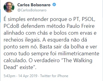 É verdade que infelizmente as ideias de Paulo Freire não foram amplamente colocadas em prática no Brasil. Se nossas escolas tivessem realizado concretamente a ideia de educação para o pensamento crítico e libertário de Paulo, provavelmente o senhor Eduardo Bolsonaro e seu pai jamais teriam sido eleitos representantes do povo brasileiro. Então não surpreende de nenhuma forma que o senhor e seus eleitores não conheçam bem o trabalho de Paulo Freire.