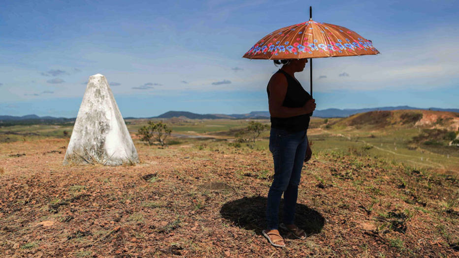 Maribel Fernandez, de 41 anos, observa a froteira do Brasil com Venezuela. Ela não consegue voltar para casa após visitar sua sobrinha em Pacaraima, em Roraima. Foto: Daniel Teixeira / Estadão