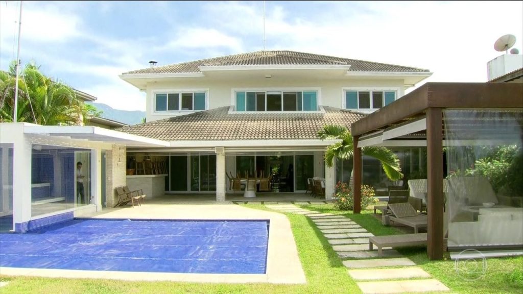 Com 462 metros quadrados, a mansão tem cinco suítes, sauna e churrasqueira, além de dois quartos de empregados. No quintal, há sala de ginástica, sauna com paredes de vidro e duas piscinas.