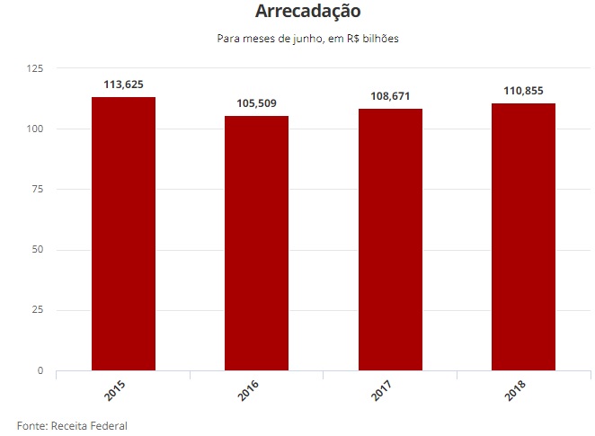 Esse foi o melhor resultado para meses de junho desde junho de 2015. Em junho de 2017, a arrecadação federal somou R$ 108,671 bilhões (em valores atualizados).