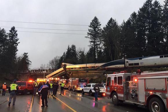 Um porta-voz do gabinete do xerife local, Ed Troyer, disse a repórteres que havia várias mortes no acidente com o trem da empresa Amtrak, que caiu parcialmente sobre a estrada. A polícia local informou pelo Twitter que vários motoristas ficaram feridos quando o trem descarrilado atingiu veículos na rodovia Interstate-5 (I-5).