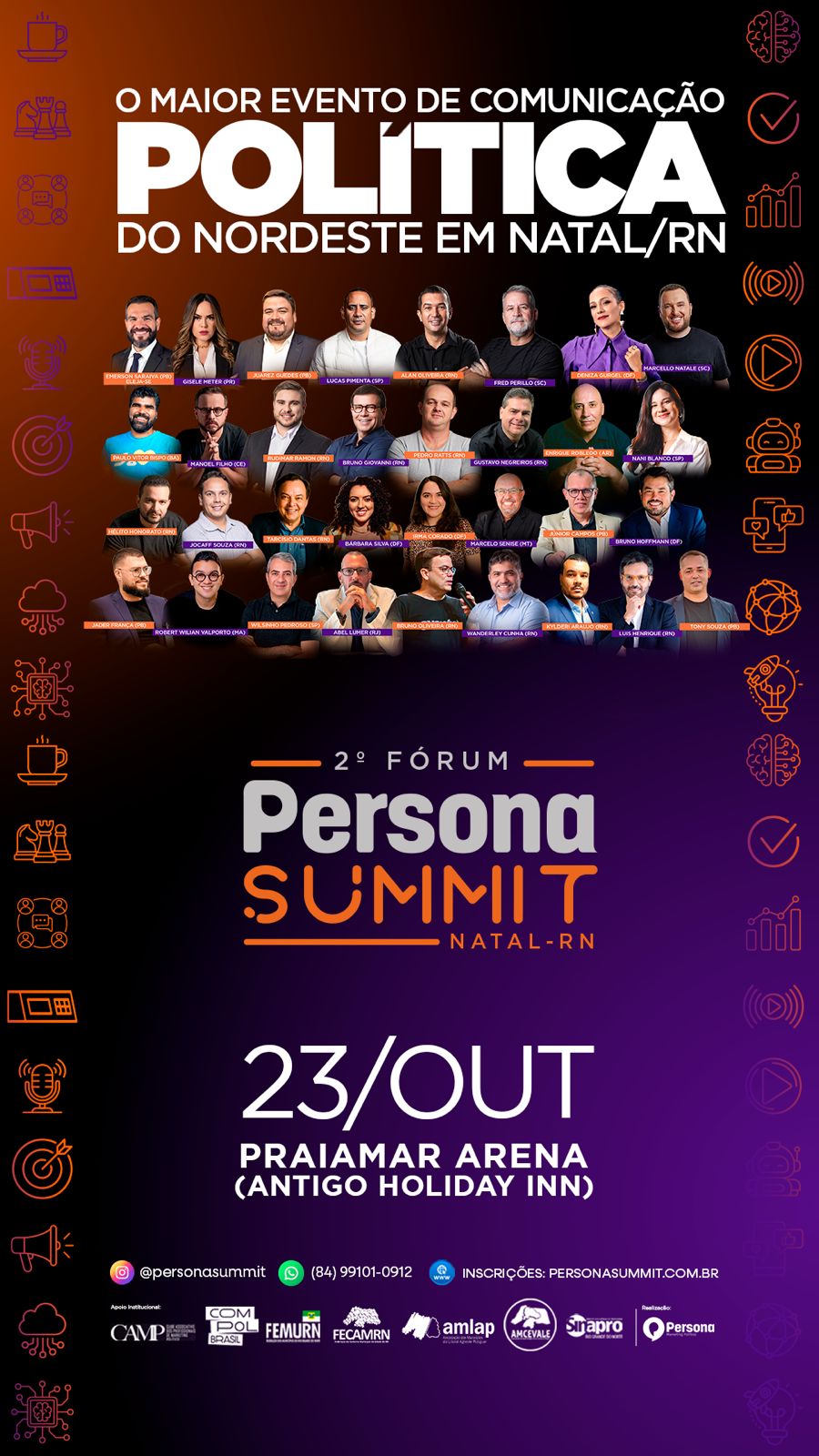 O 2º Persona Summit, maior encontro de marketing político e comunicação pública do Nordeste, entra na reta final: falta apenas uma semana para o evento que vai reunir os grandes nomes da comunicação estratégica no dia 23 de outubro, no Praiamar Arena (antigo Holiday Inn Natal).