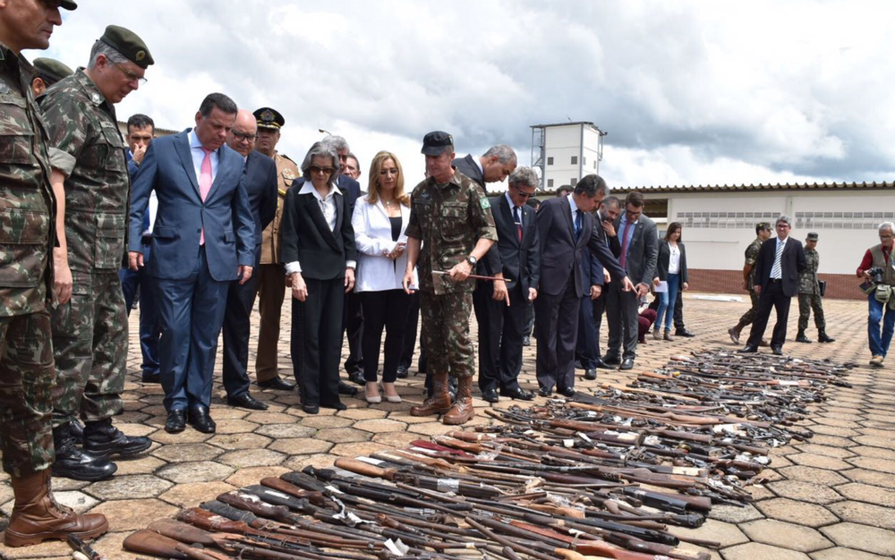Em seguida, Cármen Lúcia seguiu para Goiânia, onde assistiu à destruição de 3 mil armas no Comando de Operações Especiais do Exército.