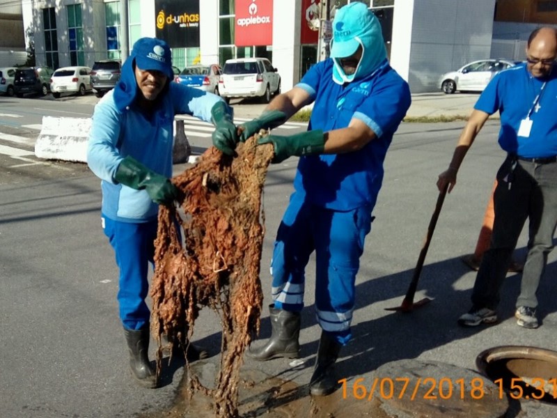 Do interior da tubulação foram retirados lixo, pedras, tecidos e até fragmentos de rede de pesca. Porém, apenas com intervenção direta na rede, por meio de escavação, será possível remover todo o lixo e reestabelecer o fluxo normal do esgoto na área da Afonso Pena.