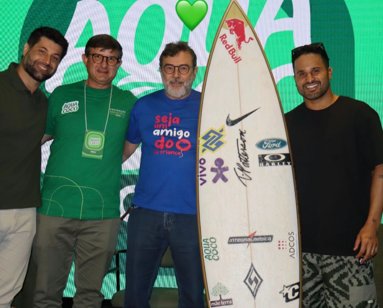 A ação contou com o apoio fundamental de Diogo Gaspar e Tahiana Gaspar, da Áqua Coco, que acreditaram no propósito e intermediaram toda a iniciativa. Foi durante o congresso da empresa que outro momento emocionante aconteceu: o empresário Alfredo Soares arrematou a prancha no leilão, reforçando ainda mais essa rede de solidariedade.