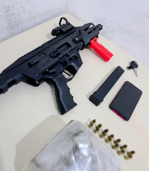 Uma submetralhadora calibre 9mm produzida por impressão 3D foi apreendida pela Polícia Militar na zona Norte de Natal, durante uma abordagem realizada na tarde da quarta-feira (4).